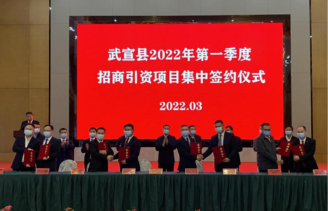 近日,八戒体育官网(中国)有限公司兴业能源集团党委委员、副总裁周青一行应邀参加广西省来宾市武宣县2022年第一季度招商引资项目集中签约仪式,与武宣县签订《广西武宣县整县分布式光伏项目合作协议》。签约仪式由武宣县委副书记陈礼锋主持,来宾市市长廖和明、武宣县委书记杨世爵、县长陈前平出席仪式。